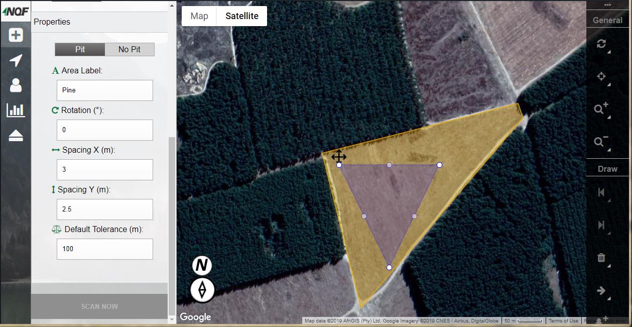Planning: The online MMS platform for compartment and workflow planning and optimization allows a user to map the boundaries of a specific field using GPS points. These GPS points are then uploaded to a web server that generates a grid that can be adjusted by the user. User defined points, such as planned planting or exclusion areas within a compartment, can be generated within the mapped area and saved to be exported as a GPS point file. Map size and plantable area can be verified which leads to accurate stocking and improved income and expenses estimation. Grids with accuracy of up to 20mm can be provided.