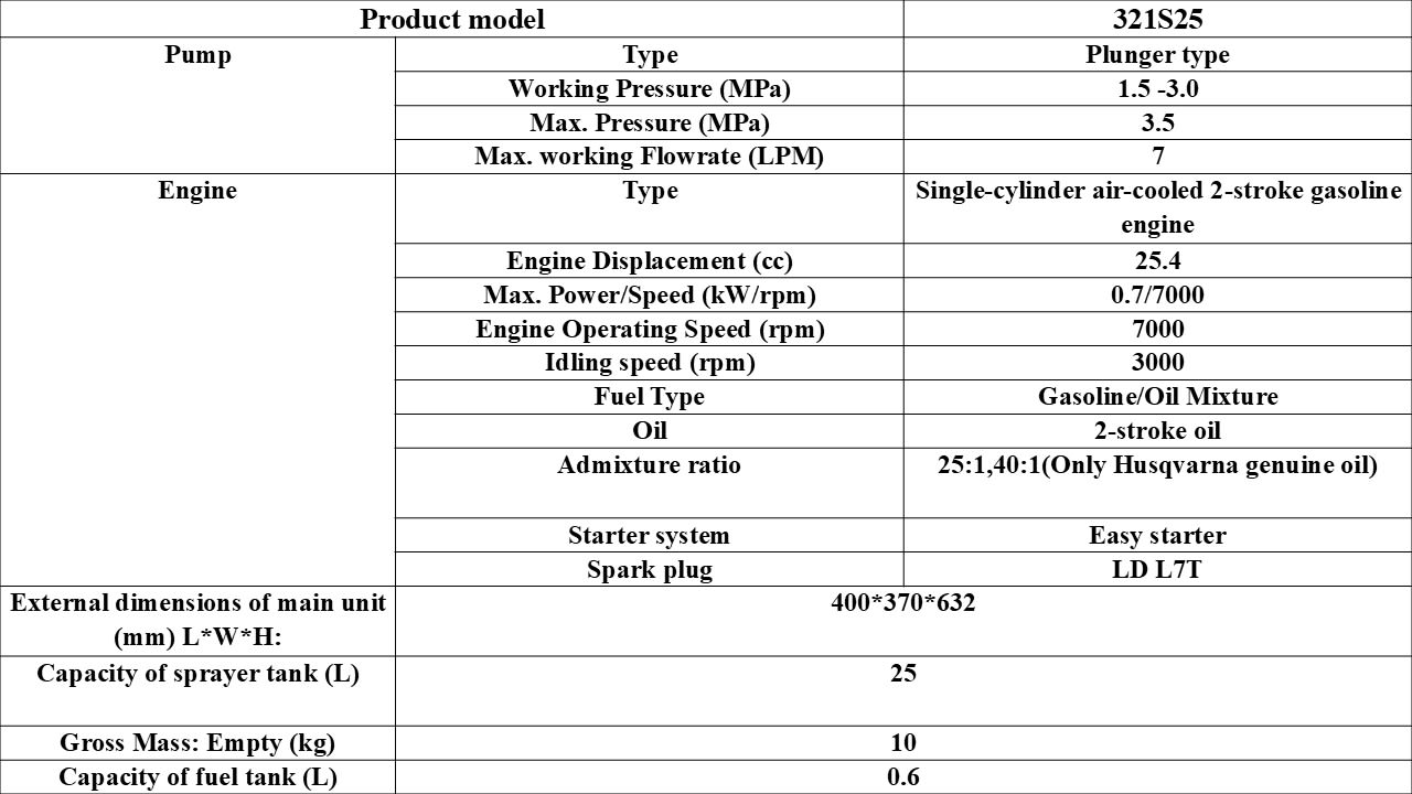 2. Considering the allowable load carried by a worker, it is advisable to purchase the 321S15 model, which has a tank capacity of 15 litres spray tank and a gross mass (empty) of 9,2 kg. However, it still needs to be filled up to the 10-litre mark.